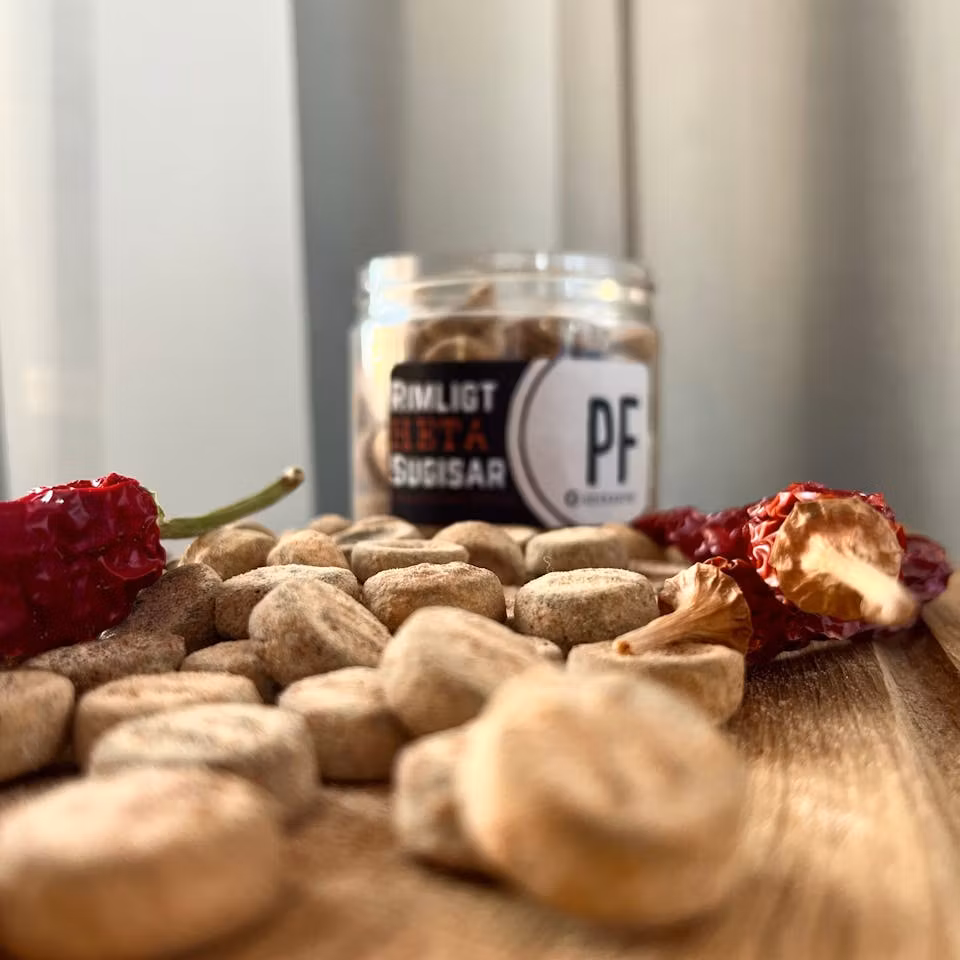 REASONABLY HOT SUGISAR is the well-balanced, sugar-free chili licorice that melts slowly and lets a pleasant heat spread on the tongue. Dipped in salt licorice, salmiac and chili powder, the licorice creates a taste experience in perfect symbiosis. Experience the brave encounter between salty and hot today and be one of the first to try our reasonably hot (and unreasonably good) novelty!