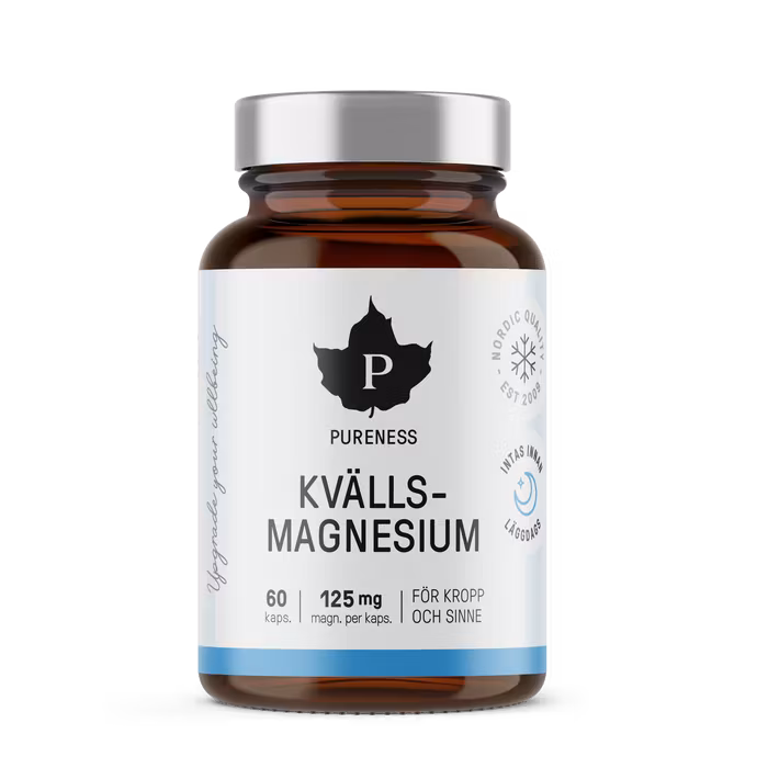 Pureness Evening Magnesium is a dietary supplement with magnesium and herbal extracts that is designed to contribute to better sleep and relaxation! Perfect for those of you who may feel stressed or have sleep problems.