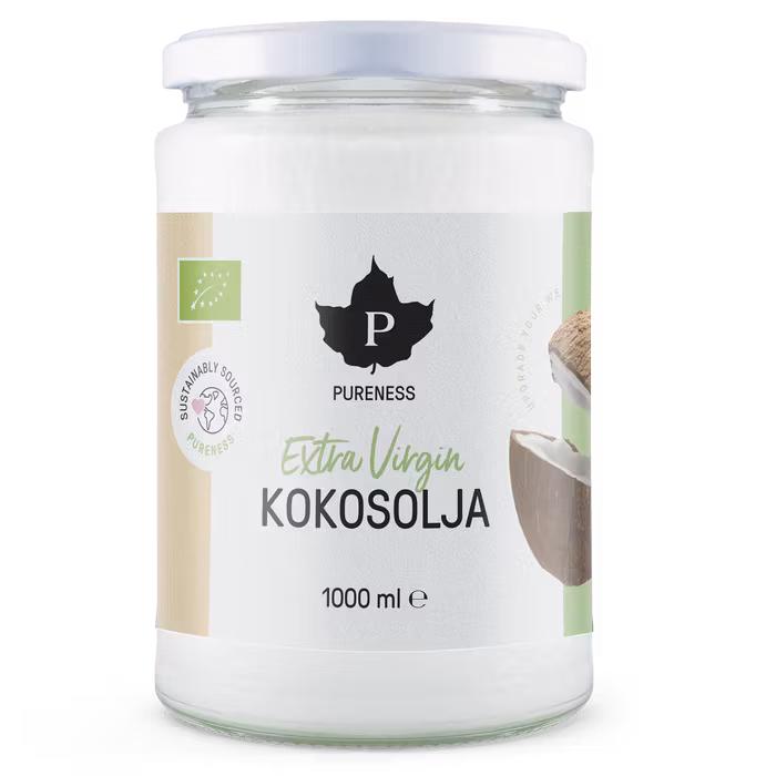 There are different ways to get the oil from the flesh. Our oil is cold-pressed, which means that no heat has been used. Only pressing, completely mechanically. This type of coconut oil is called “virgin oil”. There is also hot-pressed and refined oil, but not with us at Pureness, which protects the nutritional content. The cold-pressed coconut oil has been handled carefully, so that all the important fatty acids and nutrients are retained.