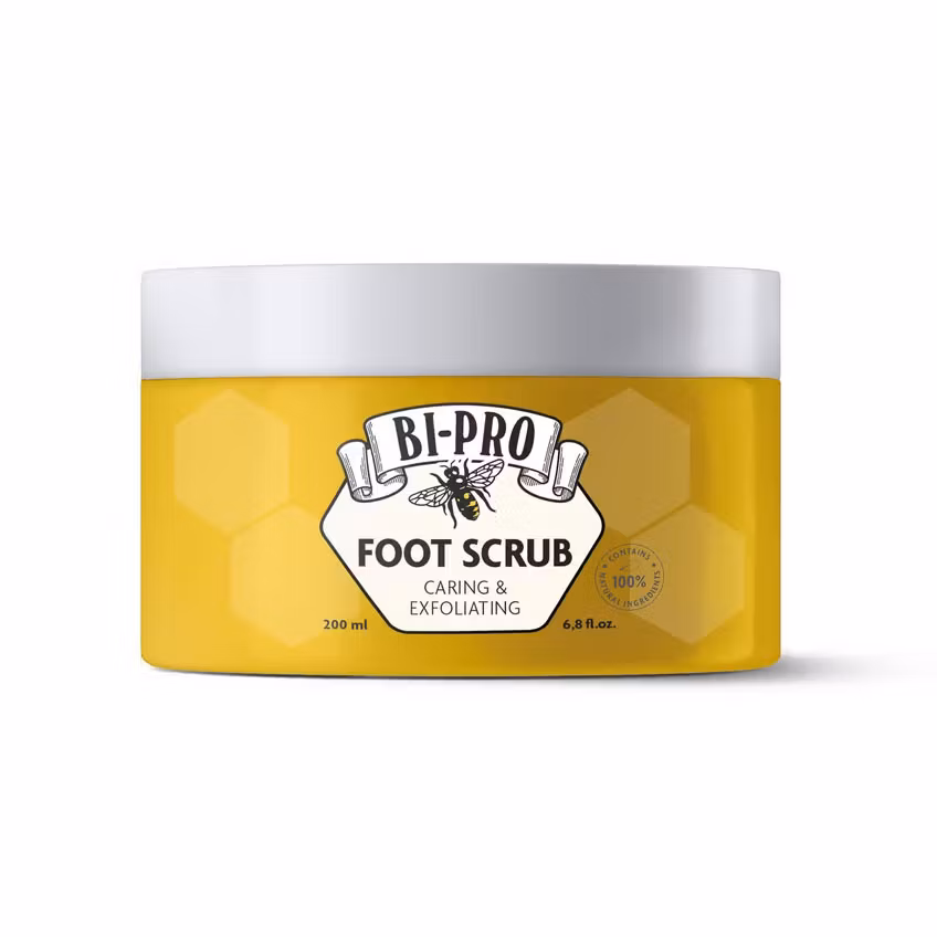 Bi-Pro Exfoliating Foot Scrub is a caring foot scrub that combines coarse salt for effective exfoliation with beeswax grains, thistle oil and squalane for a luxuriously soft and silky skin feel. This foot scrub is enriched with natural ingredients and vitamin E that revitalizes and protects the skin, while the fresh citrus and floral scent provides an invigorating feeling. Use it on damp feet, massage gently and rinse thoroughly to remove dead skin cells and hydrate. Perfect for a refreshing foot care routine that leaves feet soft and smooth.