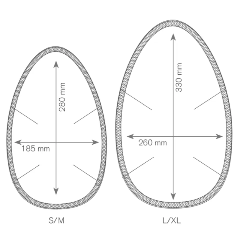 Size small fits A/B cup and size M/L fits B/C/D cup. Larger cup size can be covered with two breast warmers on the same breast and then you need two pairs. Turn the gray side towards the skin and the white shiny side towards the bra. Placement options can be found on the packaging.