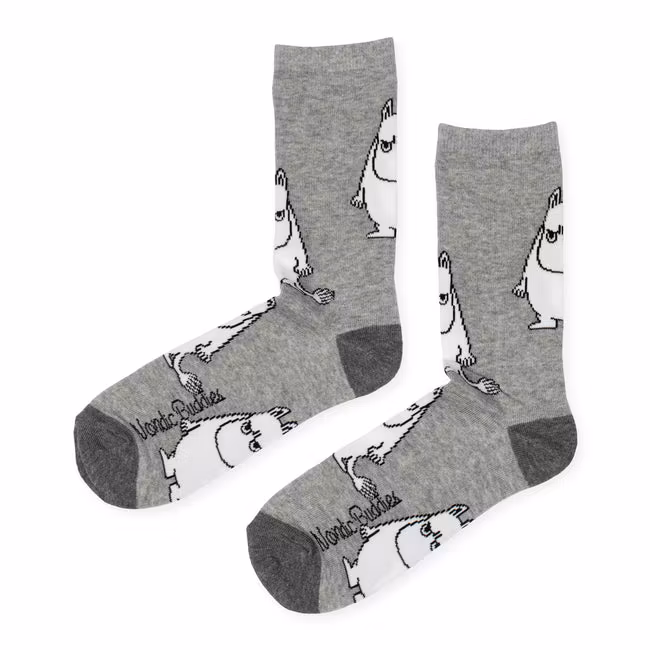 Skarpetki Moomintroll Grumpy Men marki Nordic Buddies dodadzą Twoim codziennym niezbędnikom zabawnego charakteru. Z motywem zrzędliwego Muminka z uwielbianych bajek, wniosą humor i urok do Twojej stylizacji. Szary wzór oferuje uniwersalny i klasyczny wygląd. Wykonane z miękkiej, oddychającej i wytrzymałej mieszanki materiałów, zapewniają całodzienny komfort. Świetny wybór dla fanów Muminków, którzy cenią sobie oryginalne detale w swojej garderobie.