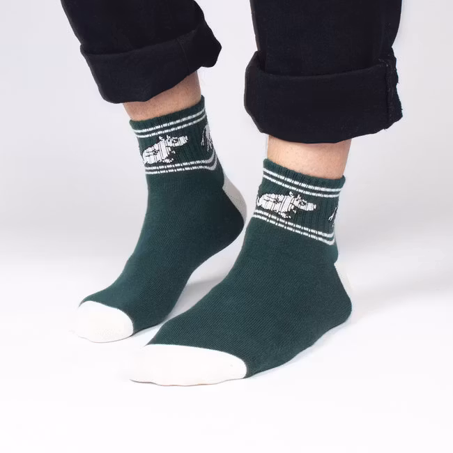 Dodaj do swojej stylizacji radosny, nordycki urok dzięki męskim skarpetkom do biegania Moomintroll Retro Ankle Socks od Nordic Buddies. Skarpetki te, w świeżym, leśnozielonym i białym wzorze, prezentują haftowany Muminek w ruchu, nadając im zabawny i nostalgiczny charakter. Krój sięgający do kostki w stylu retro sprawia, że idealnie nadają się do noszenia na co dzień z trampkami lub jako dodatek do codziennych stylizacji. Oficjalnie licencjonowane, pozwolą Ci przenieść odrobinę świata Muminków, gdziekolwiek jesteś.