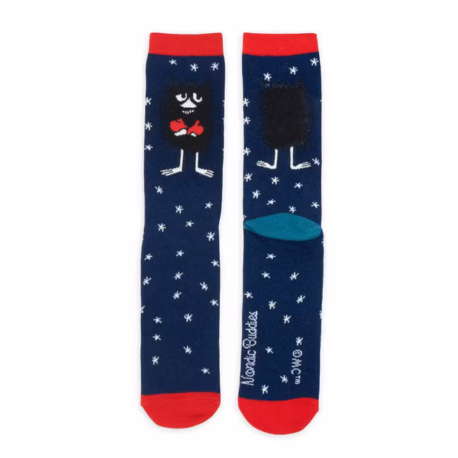 Męskie skarpetki zimowe Stinky Winter marki Nordic Buddies wnoszą ciepło i figlarny, psotny akcent w chłodniejsze miesiące. Z figlarnym Stinky z uwielbianych opowieści o Muminkach, dodadzą Twojej stylizacji zabawnego charakteru. Niebieski wzór oferuje odważny, a zarazem uniwersalny styl. Wykonane z miękkiej, izolującej i trwałej mieszanki materiałów, zapewniają stopom ciepło, a jednocześnie oddychają. Niezbędny element garderoby dla fanów Muminków, którzy cenią sobie wygodę z humorystycznym akcentem.
