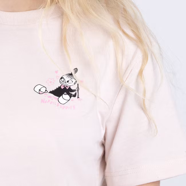 Uwolnij psotny urok Małej My w tej jasnoróżowej damskiej koszulce. Wykonana ze 100% bawełny, miękka i oddychająca, zapewnia całodzienny komfort i trwałość. Dopasowany damski krój gwarantuje stylowe dopasowanie, które dopełni każdą codzienną stylizację. Zabawny motyw malarski Małej My z przodu dodaje odrobinę humoru i charakteru. Idealny wybór dla fanów Muminków, którzy chcą dodać osobowości do swojej codziennej garderoby.