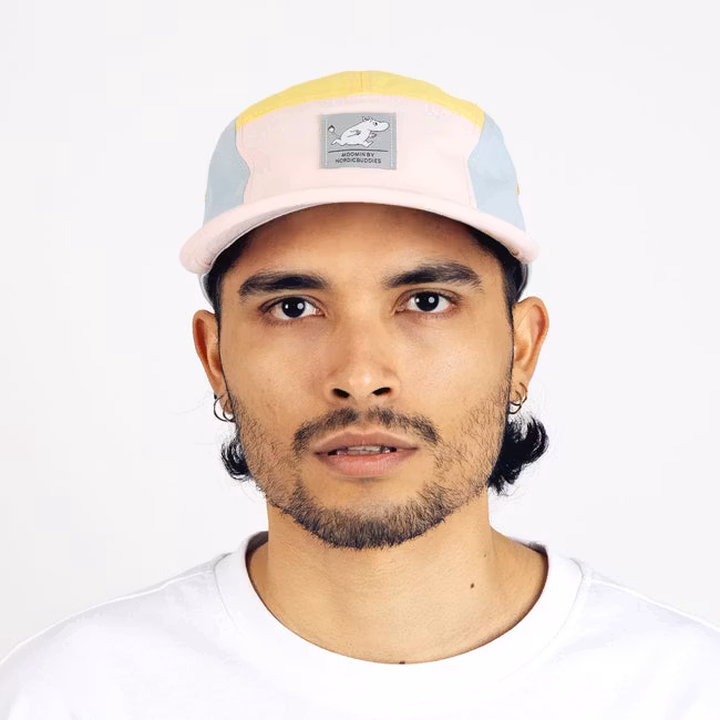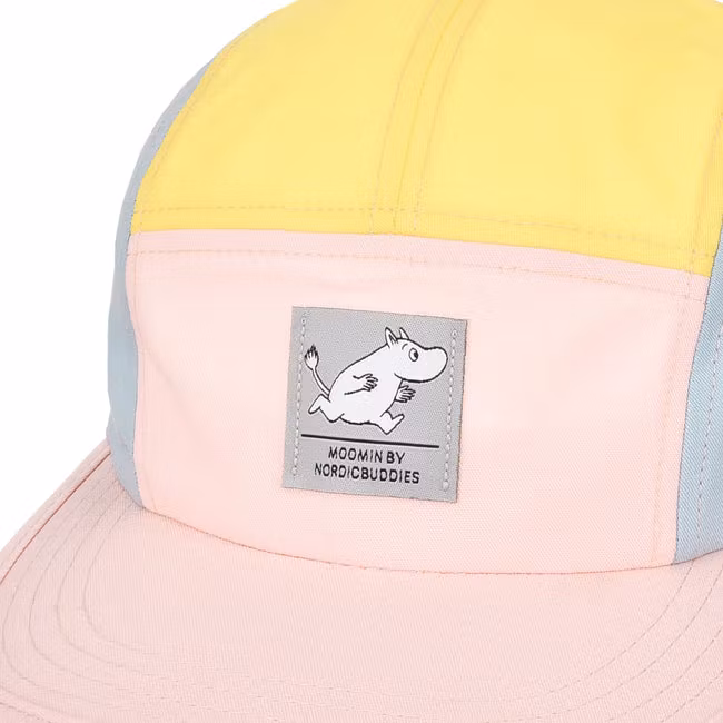 Czapka retro Nordic Buddies Moomintroll Five Panel, jasnoróżowa, jasnoniebieska i żółta – dla dorosłych, obwód 51-59 cm