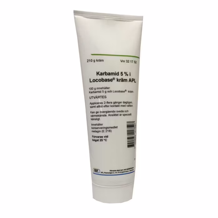100 g kremu zawiera: Mocznik 5 g Substancje pomocnicze Krem Locobase® zawiera: Alkohol cetostearylowy Cetomakrogol 1000 Parafina ciekła Biała wazelina Kwas cytrynowy bezwodny Cytrynian sodu Woda oczyszczona Krem Locobase® jest konserwowany 0,2% metagin (E 218). Typ emulsji: o/w Zawartość tłuszczu: ok. 60%