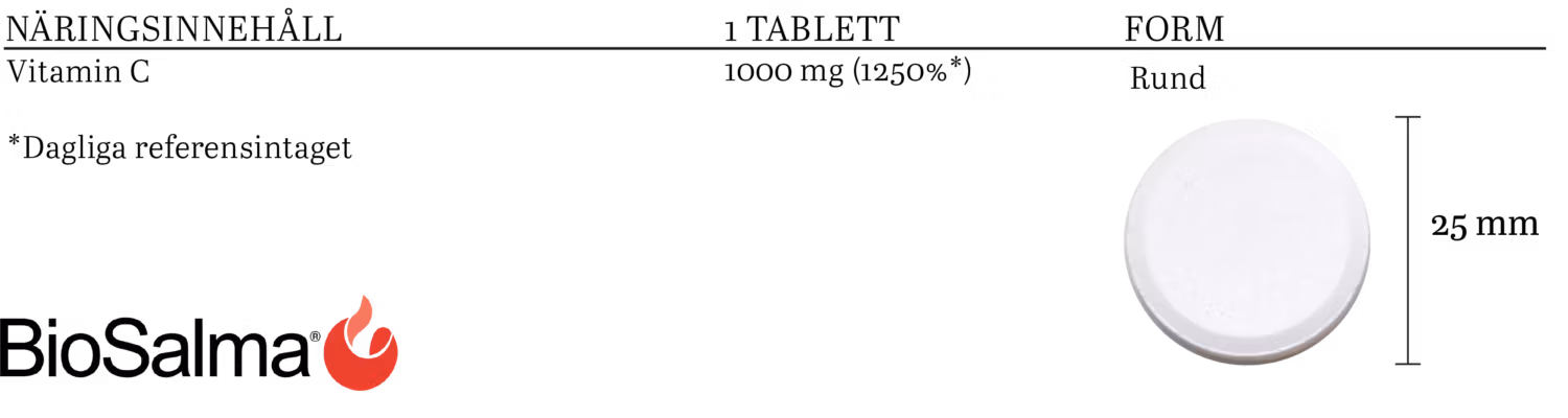 Witamina C BioSalma o smaku cytrynowym ma dobry, zdrowy smak cytryny. Tabletki musujące nie zawierają cukru i zawierają pełne 1000 mg rozpuszczalnej w wodzie witaminy C. Fakt, że jest rozpuszczalna w wodzie oznacza, że jest łatwo wchłaniana przez organizm. Witamina C nie jest magazynowana przez dłuższy czas w organizmie, ale potrzebujemy jej ciągłego przyjmowania. Witamina C działa jako przeciwutleniacz i chroni komórki przed stresem oksydacyjnym. Witamina C przyczynia się do prawidłowego funkcjonowania układu odpornościowego, prawidłowego funkcjonowania umysłu i prawidłowego funkcjonowania układu nerwowego. Witamina C pomaga zmniejszyć zmęczenie i wyczerpanie oraz zwiększa wchłanianie żelaza przez organizm. Ponadto witamina C przyczynia się do prawidłowego tworzenia kolagenu, który przyczynia się do prawidłowego funkcjonowania skóry, chrząstki, kości i naczyń krwionośnych.