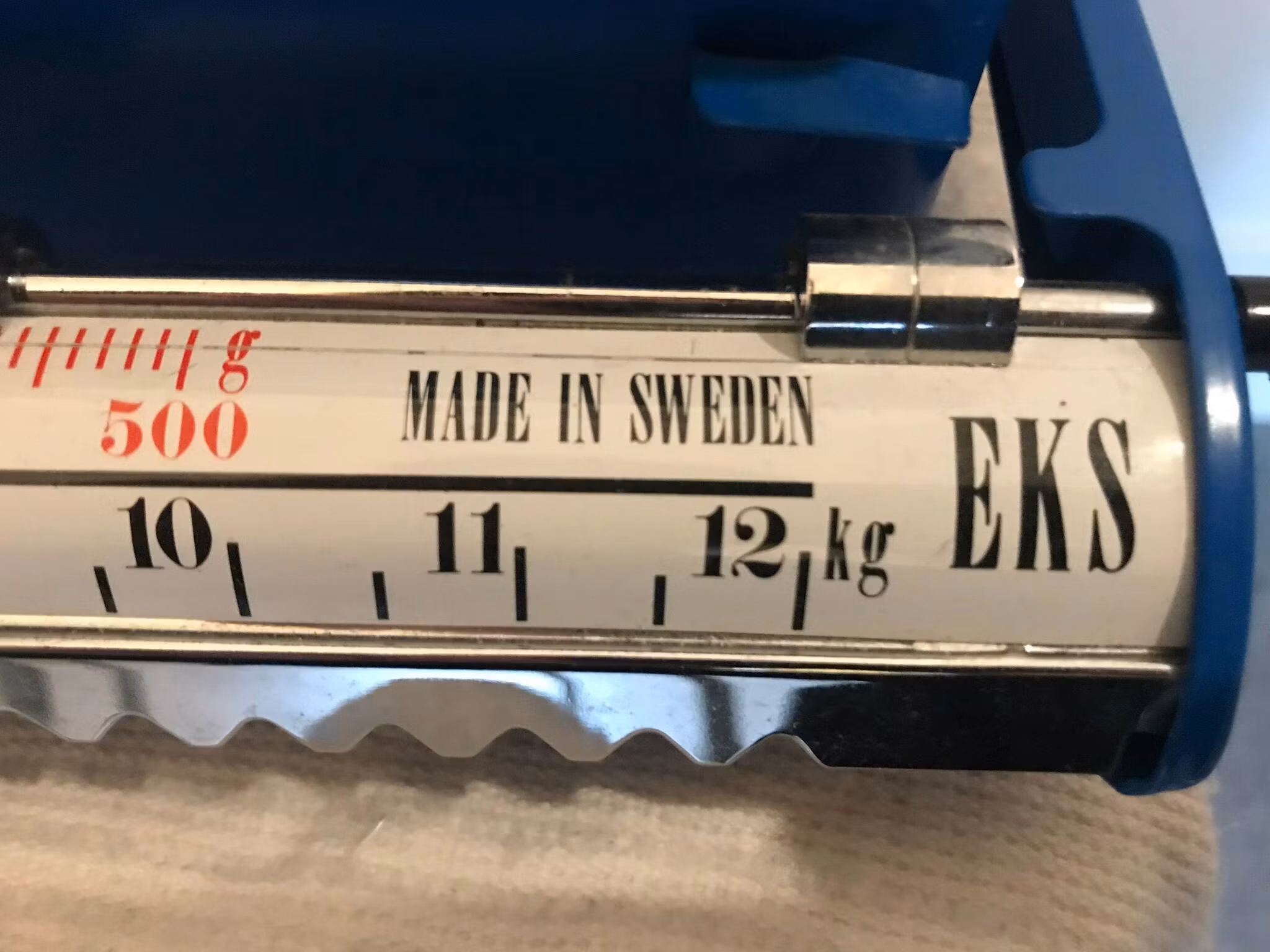 Vintage kitchen scales in working order, made by EKS in Sweden.