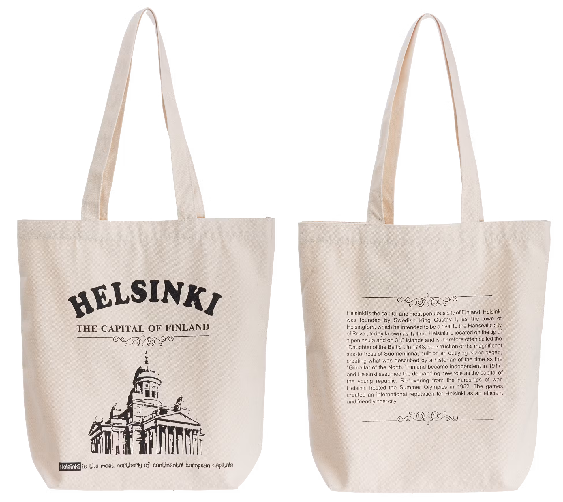 Show your love for Finland’s capital with the Robin Ruth Tote Bag – Helsinki in White. Featuring a bold Helsinki-themed design, this stylish tote is the perfect mix of practicality and modern flair. Its spacious size makes it ideal for shopping, travel, or carrying everyday essentials. Crafted from durable materials with comfortable straps, it’s built for both function and style. A versatile accessory and a great keepsake, this Robin Ruth tote bag is a must-have for Helsinki enthusiasts.