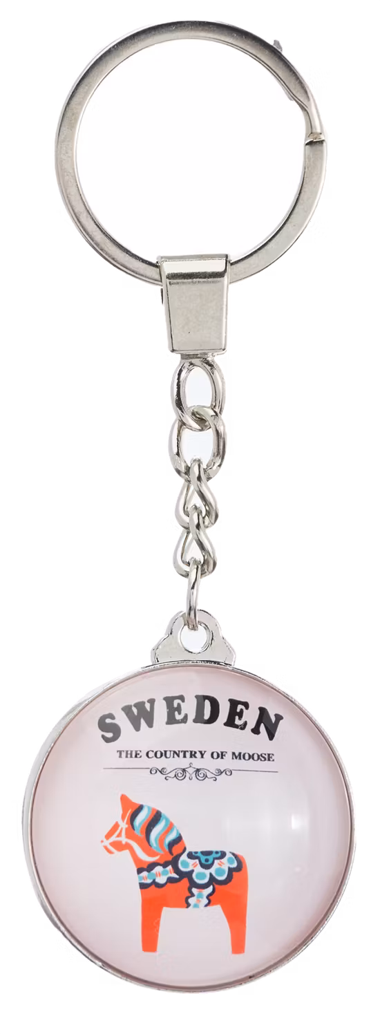Add a touch of Scandinavian charm to your everyday essentials with the Robin Ruth Round Glass Key Holder – Dalahorse. This elegant key holder features a beautifully detailed Dalahorse design encased beneath clear, durable glass for a timeless look. The round metal frame provides a sleek finish, combining durability with modern style. Perfect as a keepsake or a gift, it celebrates Swedish tradition in a compact and stylish form. Keep your keys organized while carrying a little piece of Sweden wherever you go.